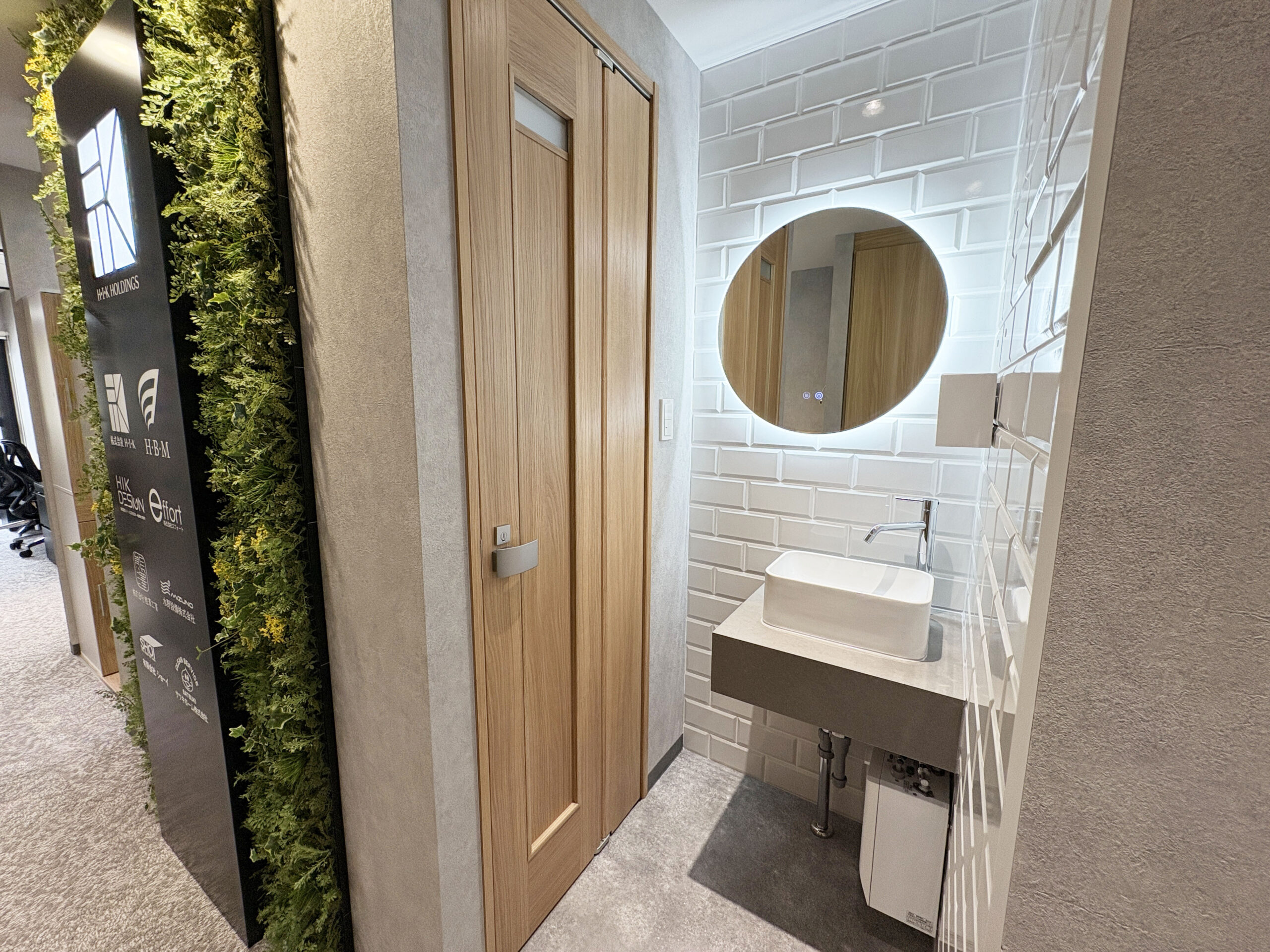 さらに、コンパクトな面積ながら男女別トイレを確保し、入口付近の洗面スペースにはタイルを施し、清潔感とアクセントを。
